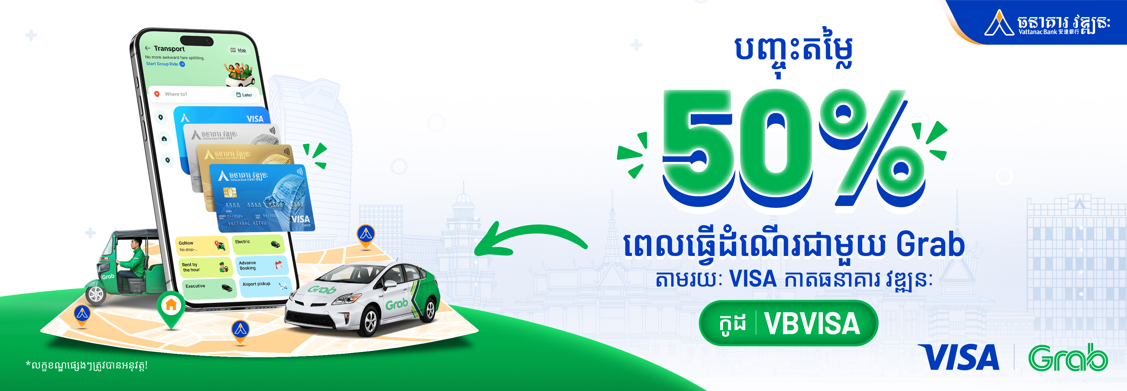 • Vattanac Bank and Grab reserve the right to amend or terminate the promotion without prior notice