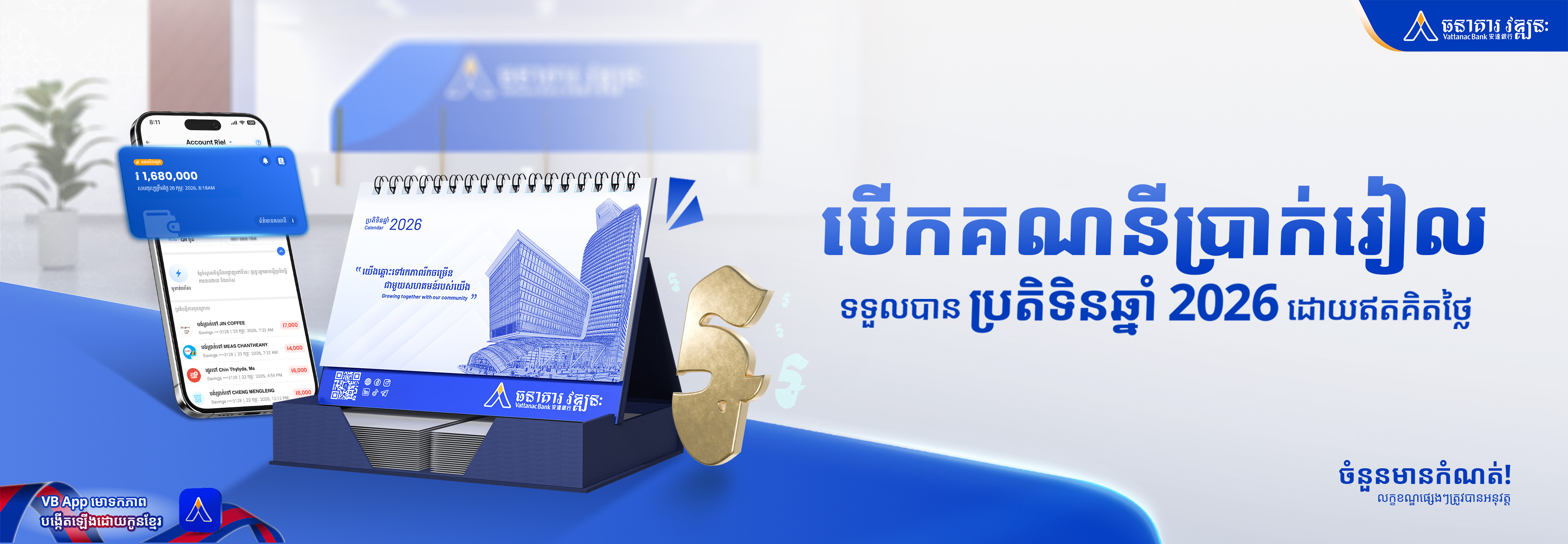 Start the new year with a special gift from Vattanac Bank! Open a KHR Account and receive a FREE 2026 Calendar — available for a limited time.